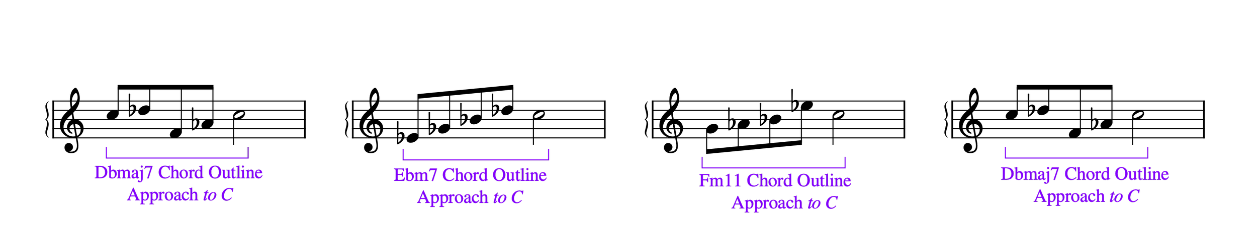 2. The second example shows how you can use a chord outline to approach a destination note, in this case C.